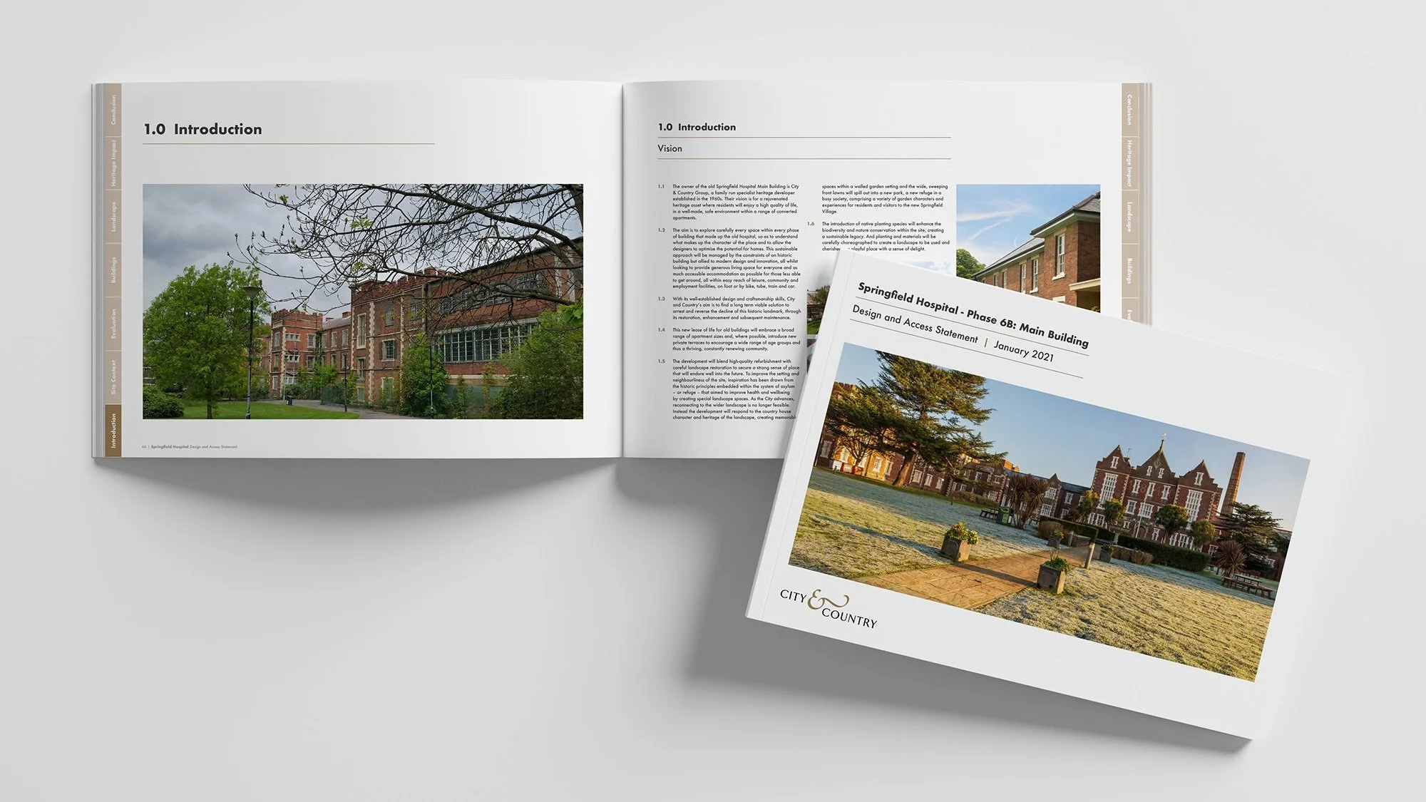 City & Country wanted a design and access document put together to apply for their new luxury development. Together we came up with a simple, effective design with a muted colour palette.